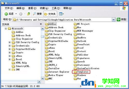 5、打開Windows的“資源管理器”,然后將剛才復制的路徑粘貼(Ctrl+V)在地址欄中,按回車鍵,這時就會直接打開文件夾,其中就有“Templates”(模板文件夾);