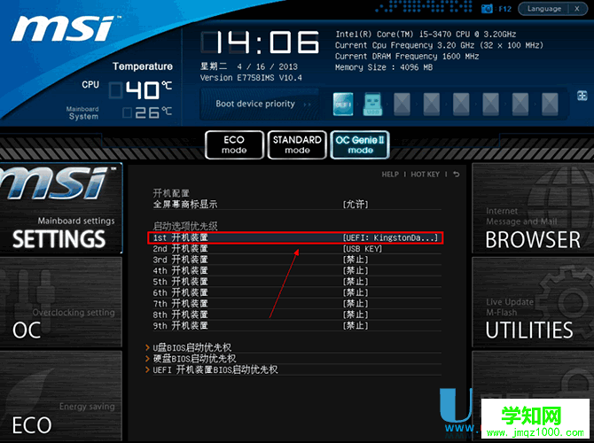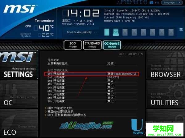 選擇Hard Disk Drives或者Hard Drives BBS Priorities啟動方式,進入后,可選U盤啟動。后面的操作步驟就跟微星筆記本一樣了,在這里就不再重復啰嗦了,大家可以按照上面介紹的方法進行操作。