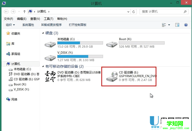 重啟之后,在電腦開機后顯示的界面還是一直按F11鍵選擇U盤啟動,進入PE,把拷入的鏡像雙擊加載到虛擬光驅