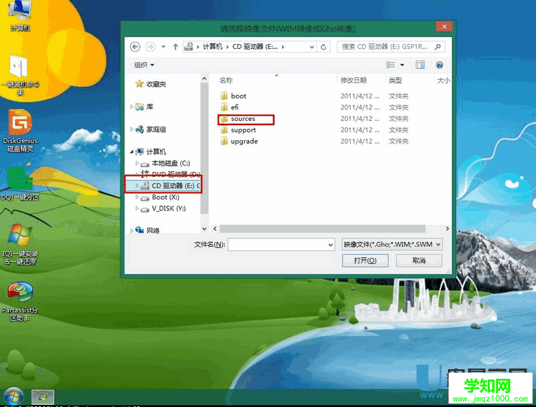 打開桌面上的IQI一鍵安裝 一鍵還原,選擇剛剛加載虛擬光驅的盤符