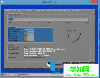 此時會出現一個類似命令提示符的窗口,這時候不要亂動鼠標,等待到了100%之后系統會自動重啟