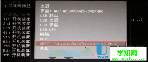 在子菜單中選擇u盤并回車將其設為第一啟動項。
