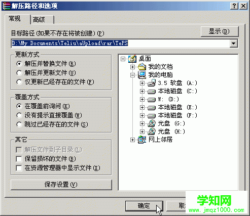 這兒直接點確定也可以,就跟第2個命令是一樣的,解壓到一個新的文件夾中,還可以在目標路徑的后面輸入新的名字;