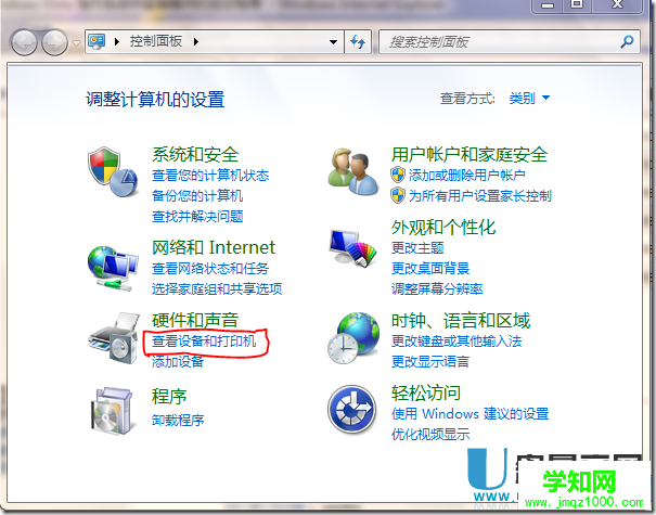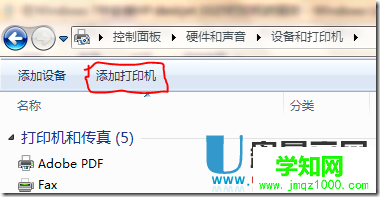 3、在控制面板窗口中,點擊 添加打印機 。如下圖所示: