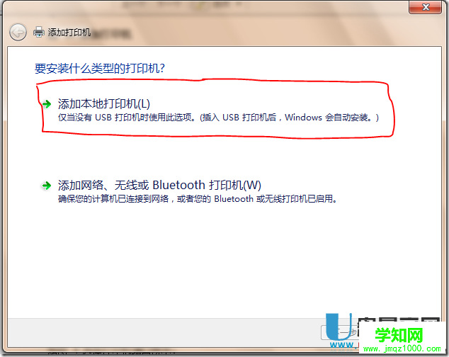 4、在 添加打印機 窗口中,點擊 添加本地打印機 。如下圖所示: