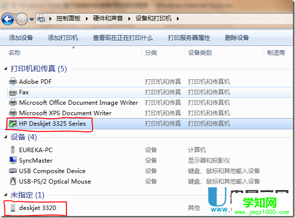 10、在打印機文件夾內,雙擊剛剛添加的 HP Deskjet 3325 Series ,未指定中的 deskjet 3320 的打印機設備不用理睬,如下圖所示: