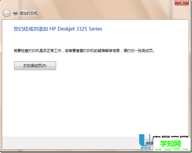 8、系統提示打印機添加成功后,點擊 完成 按鈕。然后請用 USB 連接線連接打印機和電腦。如下圖所示: