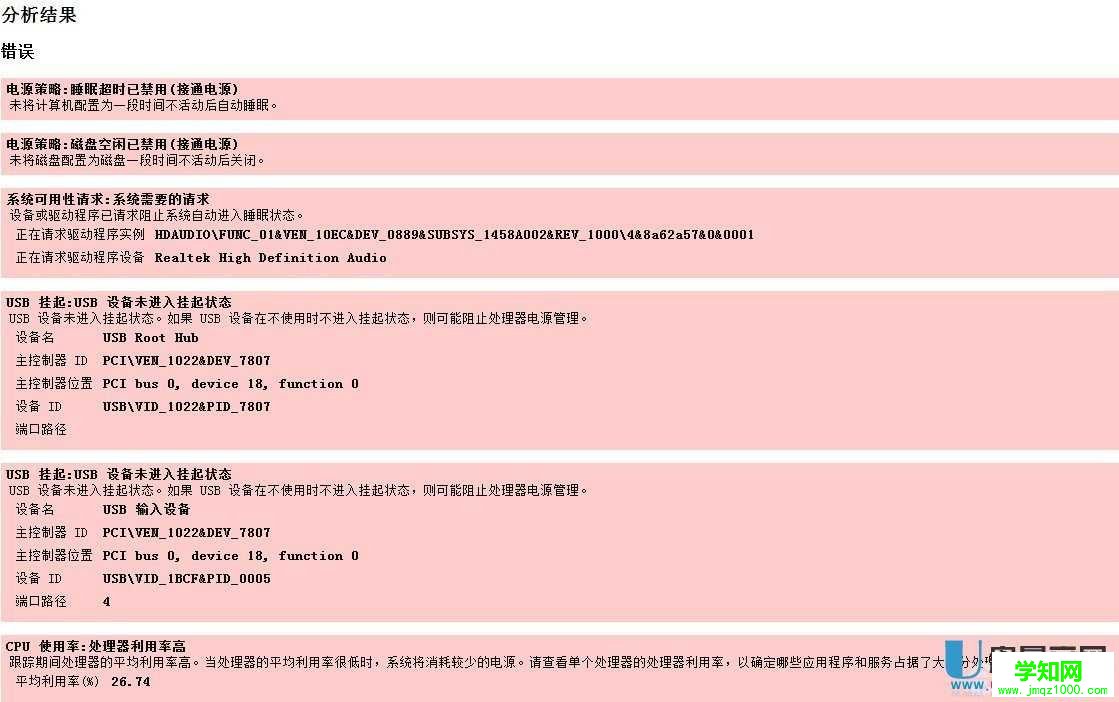 3、看到提示后,等待大約一分鐘。會提示發現能量效率問題,由于每臺電腦的問題不一樣,這里的錯誤、警告、信息的數量也是不同的。