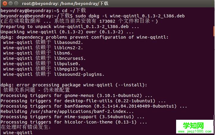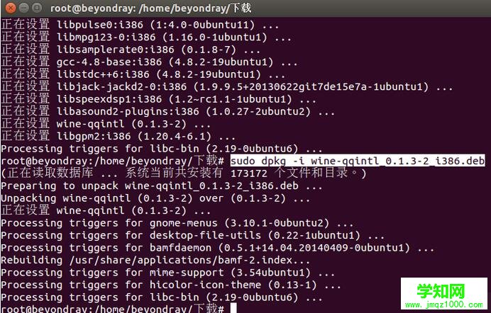 然后再重新輸入sudo dpkg -i wine-qqintl_0.1.3-2_i386.deb 然后便會發現安裝正常了。
