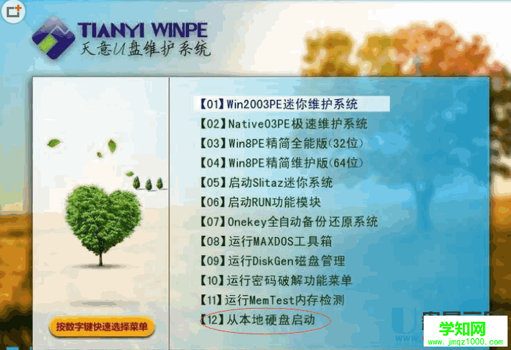 使用鍵盤上的上下方向鍵將光標移動到此處,按下回車鍵即可進入到如下圖所示的天意PE主菜單中