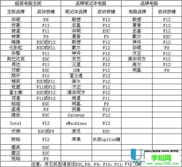 以上就是針對聯想筆記本、臺式機和主板用U盤裝系統的介紹。不同品牌的品牌臺式電腦所對應的開機啟動快捷鍵也有所不同,在這里土豆PE小編通過多方信息來源的收集將各大品牌臺式電腦,品牌 以及品牌主板組裝電腦所對應的開機啟動快捷鍵信息集合成如下圖所示的表格供大家查閱。