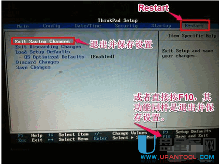 這樣傳統BIOS設置就完成了,進入Restart(重啟)這一項,在里面選擇 Exit Saving Changes (保存并退出)這一項,進行保存并退出。