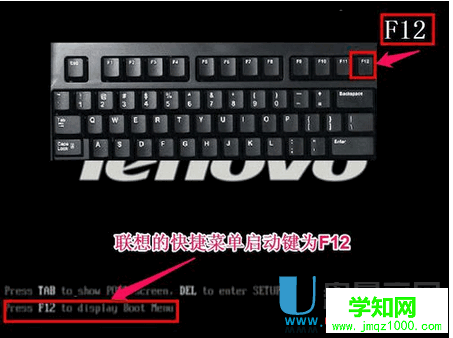 筆記本開機后就反復地按 F12 鍵,(部分超極本機型可能是 Fn+F12 組合鍵)。