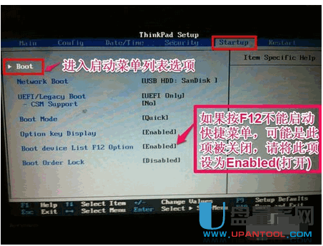 注意:如果有的快捷啟動菜單鍵F12啟動不了,按了沒有反應,那是因為這里的F12功能鍵沒打開所致。如果這里是Disabled(關閉),那肯定F12快捷鍵就用不了,所以要把它設為Enabled(打開),這樣才可以使用F12快捷啟動菜單鍵。