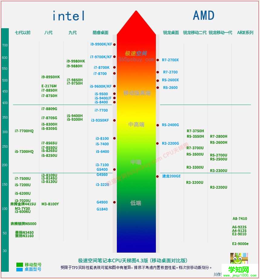 筆記本的cpu跟臺式機不同,主要是移動版cpu,在功耗和發熱上面會獨立處理,所以是不會通用的,筆記本就得移動版cpu才行,在買筆記本的時候想要知道哪個cpu比較好,就參考本天梯圖就一目了然了。