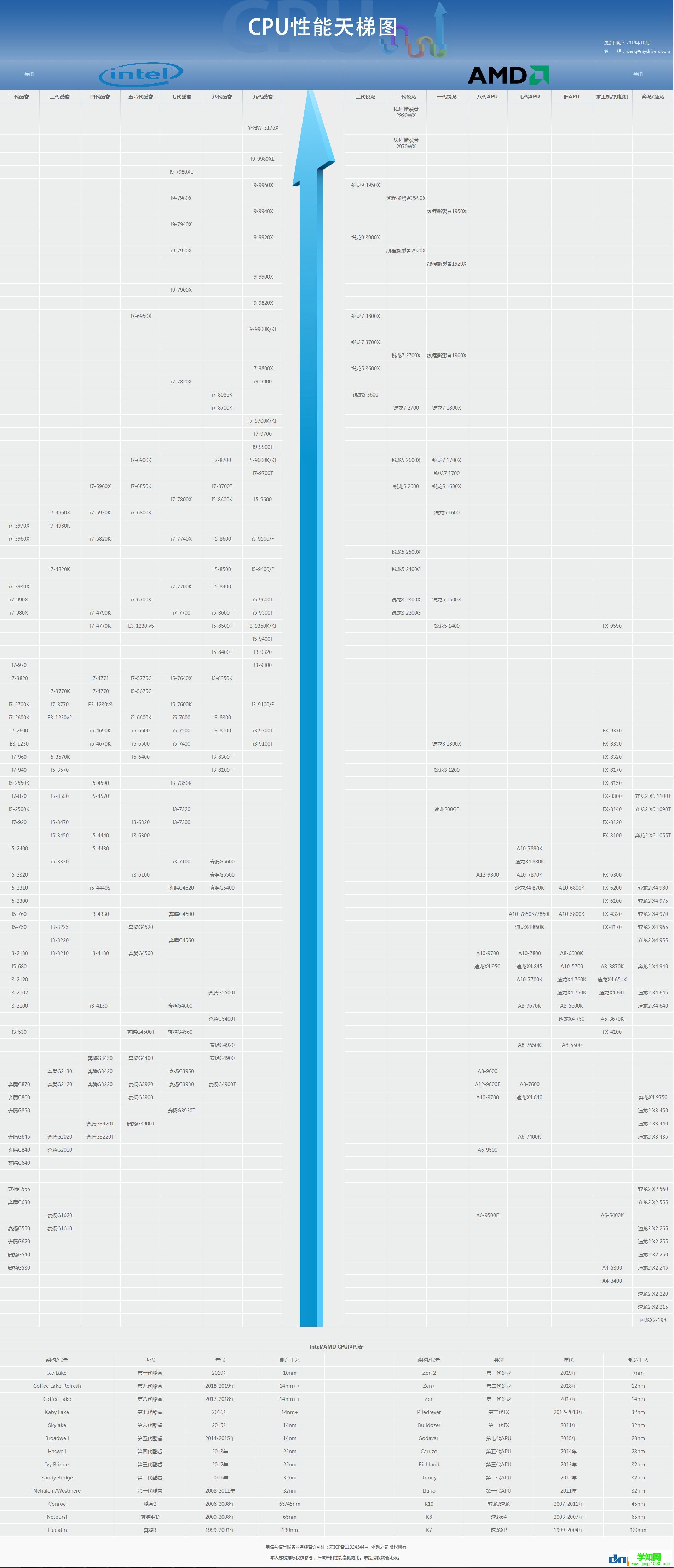 電腦性能的優異會和CPU有著很大的直接關系,所以每代CPU發布的時候,大家都會去了解其性能并且與之前的CPU進行對比。這時候我們就可以借助于CPU天梯圖來進行了解。下面就為大家分享一下2019年10月最新CPU天梯圖。
