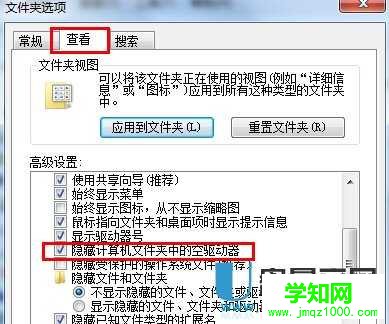 最后,我們將選項卡切換到查看這一欄,然后在下面找到 隱藏計算機文件夾中國的空驅動器 ,將它勾選上就好了!