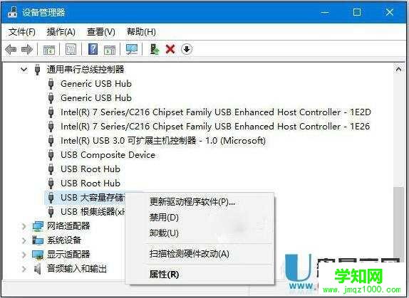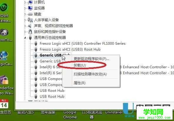 鼠標左鍵雙擊雙擊 通用串行總線控制器 項目,將所顯示的灰色項目和USB大容量存儲設備卸載掉。