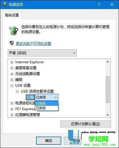 展開USB設置 USB選擇性暫停設置,將其設置為 已禁用 ,確定。