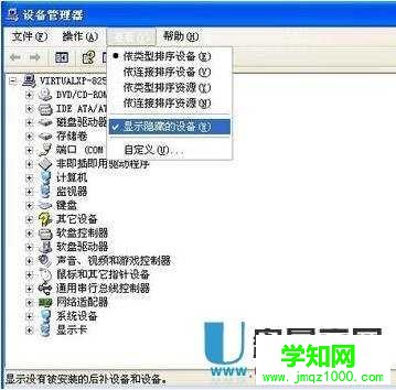 打開設備管理器,在菜單欄點擊 查看 - 顯示隱藏的設備 。