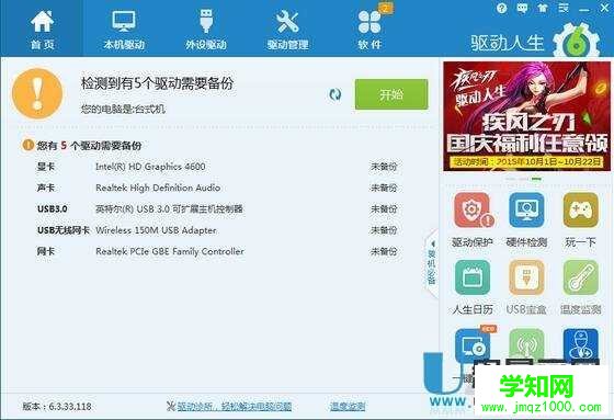 當USB設備插入 USB接口沒有反應,換個USB接口仍然沒反應時,首先我們需要借助 驅動人生 或 驅動精靈 來更新html' target='_blank'>電腦硬件驅動程序,特別是主板驅動程序,以確保系統可以識別各類兼容USB設備。直接運行 驅動人生 工具,將自動完成電腦硬件驅動的檢測并修復操作。