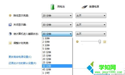 5、接通電源的情況我選擇的是從不,這樣電腦在不操作的情況下就會一直亮著。