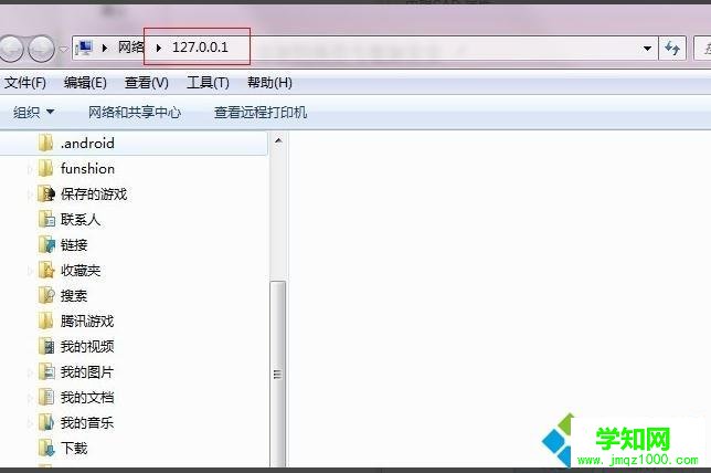 4、這種共享的好處在于,平常的共享只需要輸入該電腦的IP地址即可直接瀏覽共享文件,而加了$之后,直接看不到共享的文件夾,必須輸入完整的ip地址+文件名(圖中127.0.0.1為訪問本機的默認地址)。