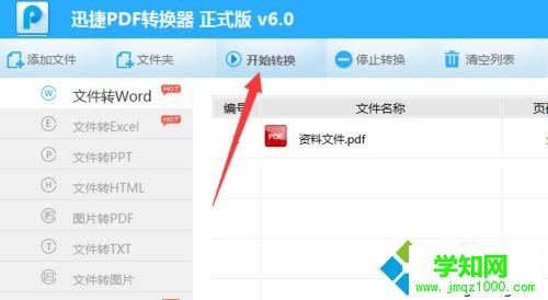 2、接著切換到“文件轉Word”選項卡,點擊“開始轉換”按鈕,如圖PDF是加密文檔,需要輸入對應的密碼;