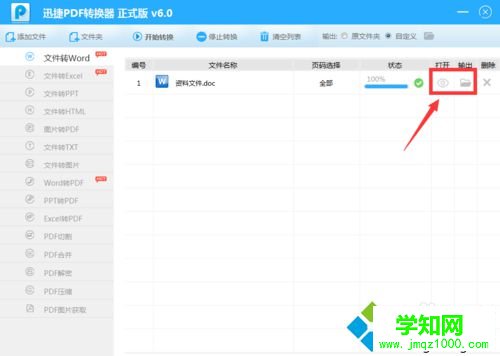 3、待轉換操作完成后,就可以點擊“打開”或“打開文件夾”以編輯或查看已轉換完成的文檔;