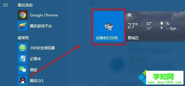 4、添加之后,打開(kāi)開(kāi)始菜單,我們就可以看到“設(shè)備和打印機(jī)”了!