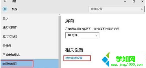 2.然后在系統設置界面的左側選擇“電源和睡眠”,然后點擊界面右側的“其他電源選項”,進入下一步。