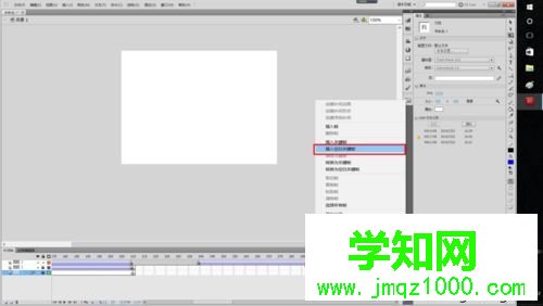 6、在時間軸上選擇一幀,這里我選的是50幀,右鍵,點擊“插入關鍵幀”;
