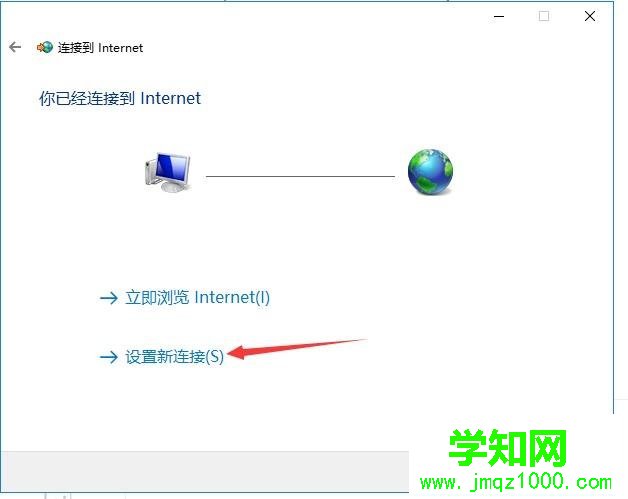 接著在彈出的 連接到internet 窗口,選擇 設置一個新連接 。如圖1-3所示。