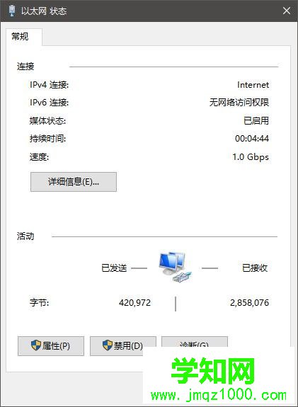 2、在打開的頁面右上方,點擊以太網出現此頁面。