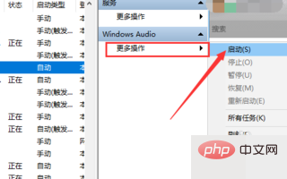 3、點擊服務后,中間會有許多已經安裝的服務和程序清單,找到并點擊里面的Windows Audio。