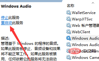 5、若是顯示已經啟用,我們可以看到,左側服務下面有個重啟動此服務的按鈕,點擊一下即可,就會對揚聲器重啟。