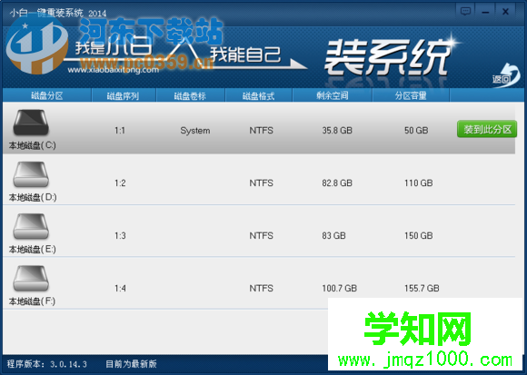 第二步:選擇系統安裝的磁盤分區,一般為你的C盤目錄,也就是你當前系統的所在目錄
