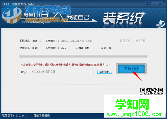 第四步:進入系統的下載安裝界面,點擊 下載安裝 即可,然后開始自動下載你所選的系統版本,完了就會提示重啟安裝,整個系統安裝基本完成!