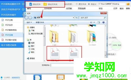 3、于軟件正上方點擊“添加文件/添加文件夾”,將打開窗口中所在的PDF文件逐個導入軟件界面中,PDF壓縮工具還支持文件夾的添加,這點對于需要批量壓縮的用戶來說是非常便利的。