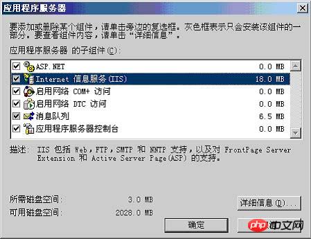 5.單擊詳細信息,以查看IIS可選組件列表。