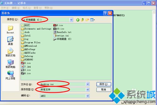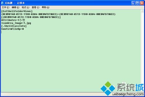 6、[ExtShellFolderViews]{BE098140-A513-11D0-A3A4-00C04FD706EC}={BE098140-A513-11D0-A3A4-00C04FD706EC}[{BE098140-A513-11D0-A3A4-00C04FD706EC}]Attributes=1小書IconArea_Image=1.jpg[.ShellClassInfo]ConfirmFileOp=07、把記事本文件命名為:desktop.ini文件類型為:所有文件保存到C:(也就是C盤)保存文件。