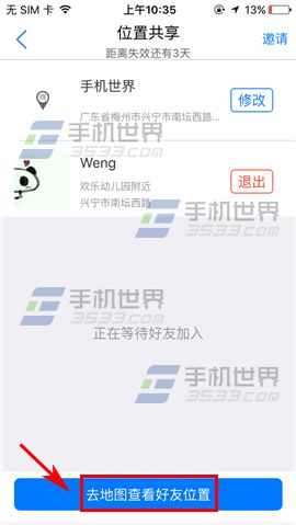 2.點擊下方的【去地圖查看好友位置】,然后點擊左下方的【按鈕】;(如下圖)