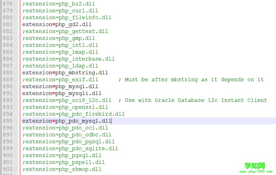 ;extension=php_gd2.dll;extension=php_curl.dll;extension=php_mbstring.dll;extension=php_exif.dll;extension=php_mysql.dll;extension=php_mysqli.dll;extension=php_scokets.dll;extension=php_pdo_mysql.dll去掉后如下: