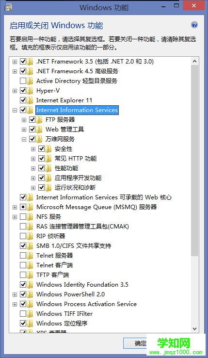 然后,找到“Internet Information Service”(IIS)并展開,勾選所有項(實際上很多選項使我們用不到的,用什么勾選什么就OK了):