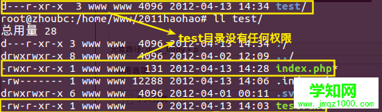 觀察各個權限:test對www是沒有任何權限的,而執行文件index.php有讀寫執行權限,包含文件test.txt有讀寫權限。