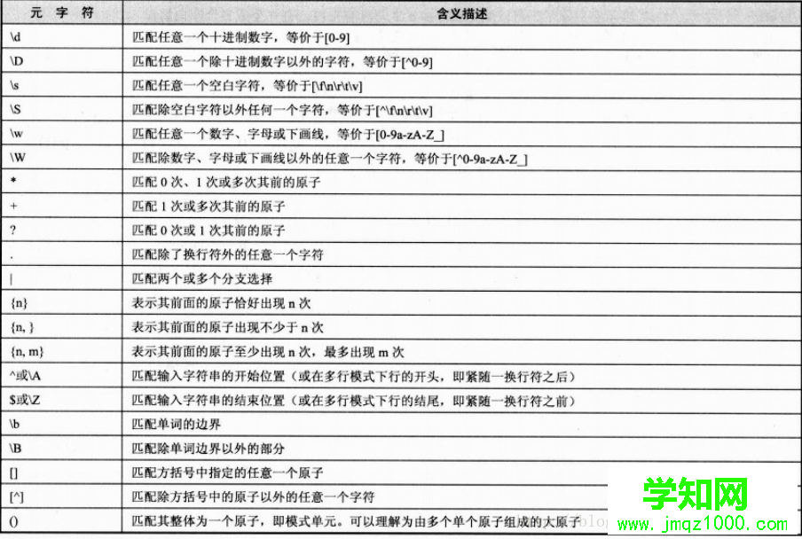 1.3 元字符:用于構建正則表達式的具有特殊含義的字符。Perl可以使用各種元字符來搜索匹配,如*、+、?.常見的元字符如下
