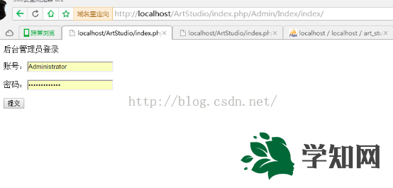 檢測(cè)是否成功訪問網(wǎng)址http://localhost/ArtStudio/index.php/Admin/Index/index