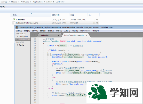 添加控制器方法打開xampphtdocsArtStudioApplicationAdminController下的IndexController.class.php