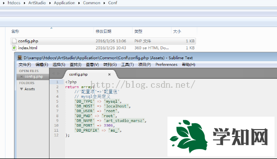 修改MySQL設(shè)置信息配置文件位于:xampphtdocsArtStudioApplicationCommonConf的config.php: