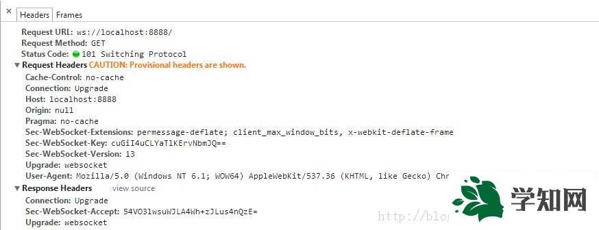 之后是得到key然后進(jìn)行websocket協(xié)議規(guī)定的加密算法進(jìn)行計(jì)算,返回響應(yīng)頭,這樣瀏覽器驗(yàn)證正確后就握手成功了。這里涉及的詳細(xì)解析信息過(guò)程參見(jiàn)另一篇博文http://blog.csdn.net/u010487568/article/details/20569027
